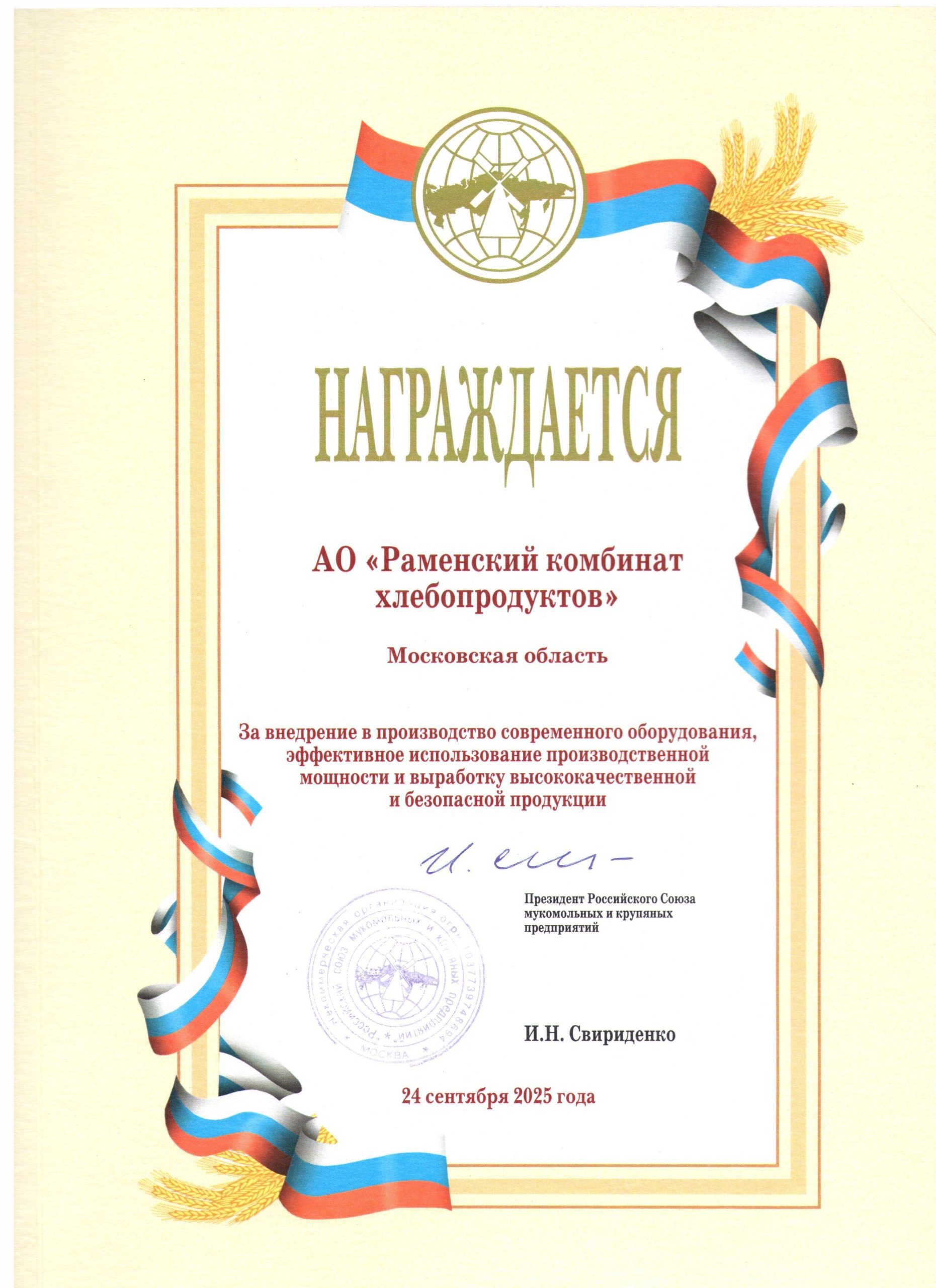 Раменский комбикормовый завод переименован в Раменский комбинат хлебопродуктов